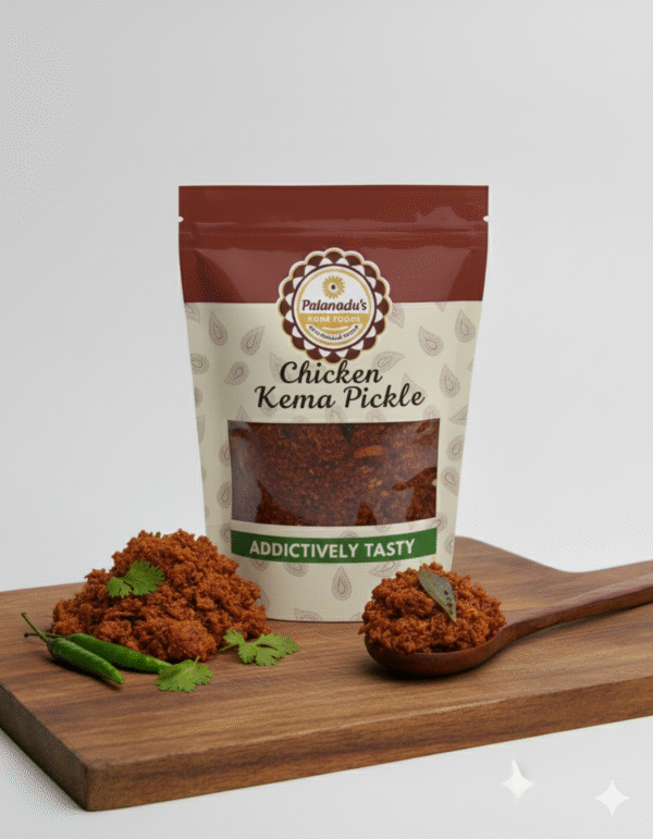 Palanadu’s Chicken Keema Pickle is a perfect blend of tender minced chicken slow-cooked with authentic Andhra spices.
