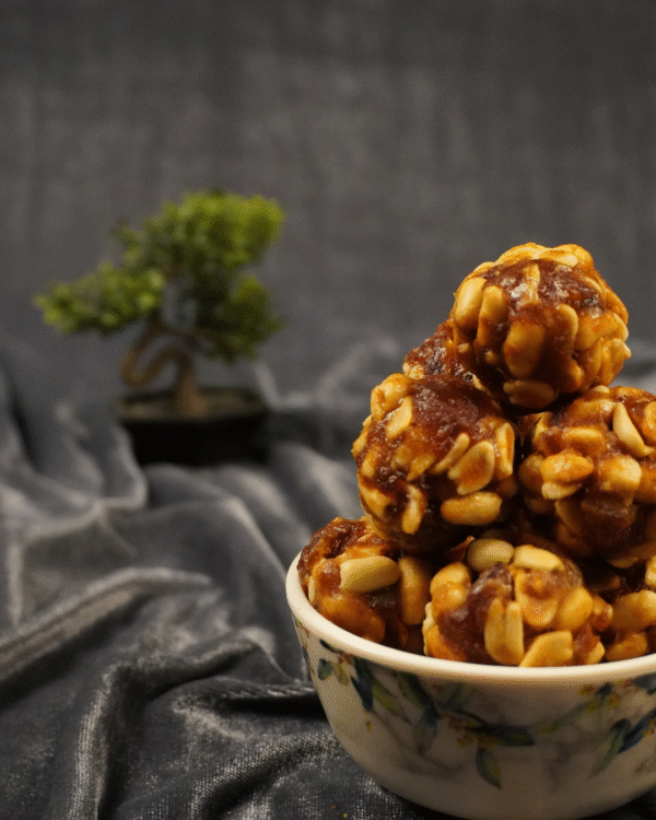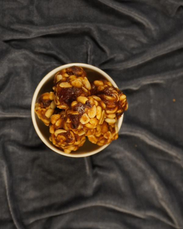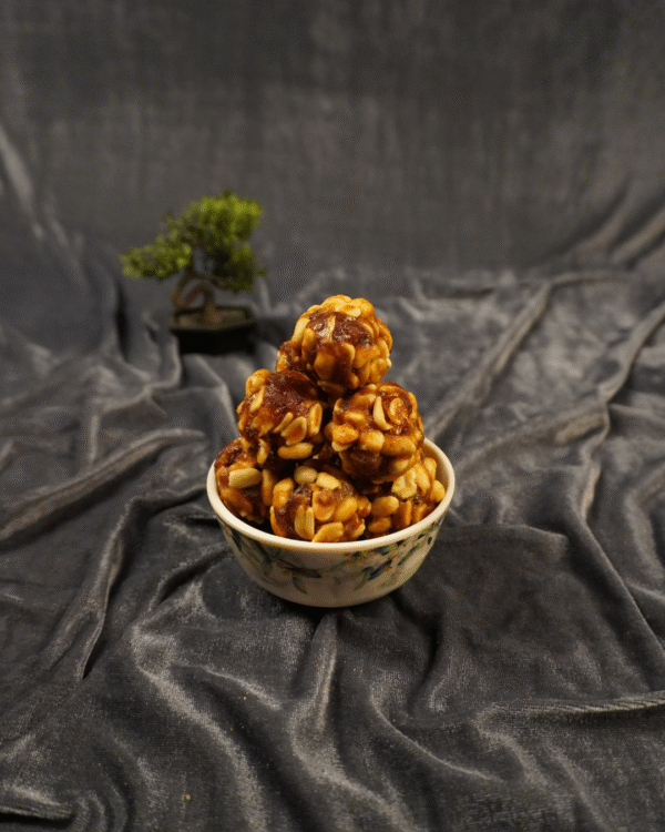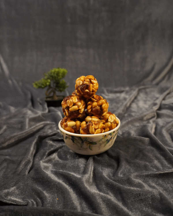 Palli Karjuram Laddu is a naturally sweet and protein-rich delight made with roasted peanuts, soft dates, and a touch of ghee. The peanuts are roasted to perfection, releasing their nutty aroma, and then blended with dates for natural sweetness. Warm ghee binds the mixture, making it soft, chewy, and full of flavor. Packed with energy, protein, and essential minerals, this laddu is both delicious and nutritious. A perfect snack for kids, fitness lovers, and festive occasions alike.