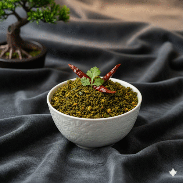 Karivepaku Karam is a traditional Andhra-style spice mix made with fresh curry leaves, red chilies, garlic, and aromatic spices. This flavorful powder is packed with nutrients, especially iron and antioxidants, making it both tasty and healthy. Known for its unique aroma and earthy taste, it adds a punch when sprinkled over hot rice with ghee, idli, dosa, or upma. Prepared using authentic recipes, it carries the essence of homemade flavor. Free from preservatives, it is both delicious and wholesome. A perfect blend of health and taste in every spoonful!