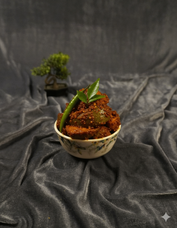Mamidikaya Pachadi, also known as Raw Mango Pickle, is a tangy and spicy delicacy from Andhra cuisine. Made with farm-fresh raw mangoes, it is blended with aromatic spices, red chili powder, and gingelly oil to create an irresistible flavor. This pickle is a perfect balance of sourness, spice, and traditional taste that pairs well with hot rice, dal, or curd rice. Carefully prepared in hygienic conditions, it retains its authentic homemade flavor. A true Andhra classic, Mamidikaya Pachadi brings the nostalgic taste of summer to every meal.