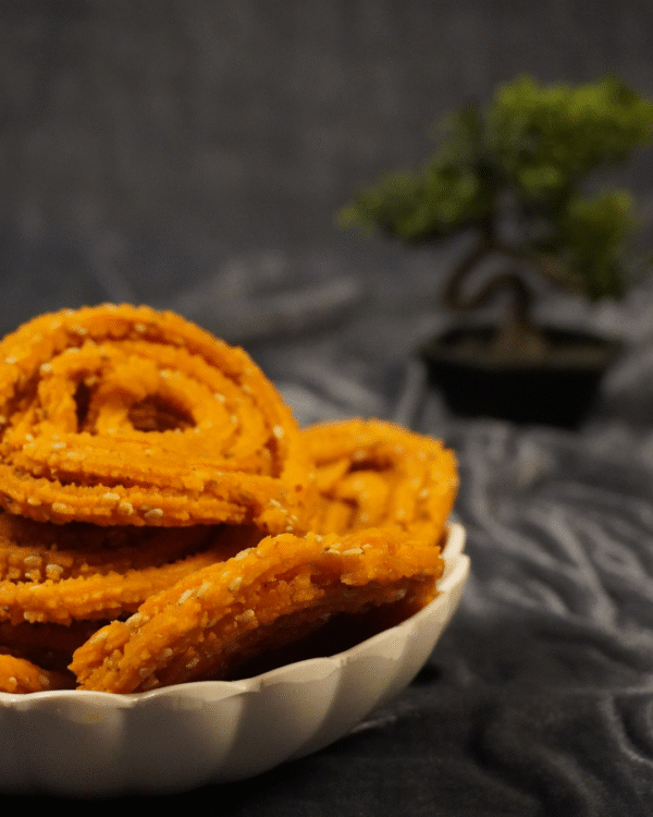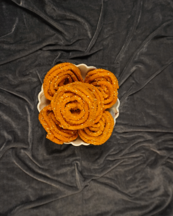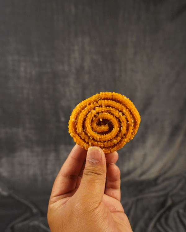 Nuvvula Murukulu is a classic South Indian crunchy snack made with rice flour, urad dal flour, sesame seeds (nuvvulu), and aromatic spices. The dough is pressed into spiral shapes and deep-fried to a crisp golden texture that melts with a satisfying crunch. The sesame seeds add a nutty flavor and boost nutrition, making this a tasty yet wholesome treat. Perfect for festivals, celebrations, or tea-time munching, Nuvvula Murukulu is a timeless Andhra delicacy. Packed hygienically to preserve its freshness, flavor, and crunch.