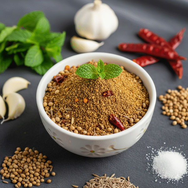 Pudina Karam is a traditional Andhra-style spicy podi made with fresh mint leaves, red chilies, garlic, and aromatic spices. It is known for its unique blend of refreshing mint flavor and fiery heat, making it a perfect side for hot rice with ghee or as a sprinkle over idli, dosa, and snacks. Prepared with fresh, hand-picked ingredients, it brings out the authentic homemade taste. Packed hygienically, it retains its rich aroma and flavor for long. A must-have for those who love bold, spicy, and refreshing flavors in their meals.